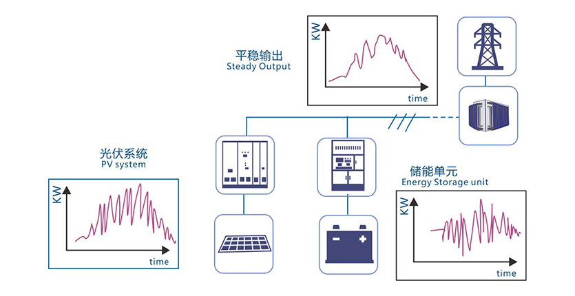 針對風能或太陽能發(fā)電不連續(xù)、不穩(wěn)定、不可控的特點,我司提供配套的儲能系統(tǒng),可平滑風力及光伏發(fā)電輸出,實現(xiàn)跟蹤計劃發(fā)電。