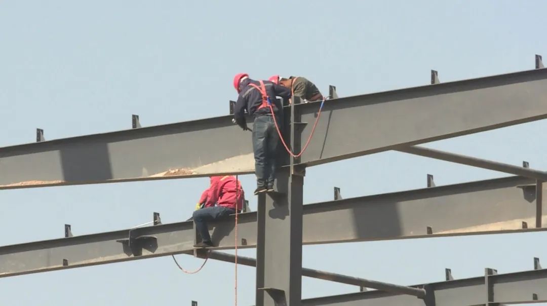 在金昌漢星能源有限公司項(xiàng)目施工現(xiàn)場(chǎng),記者看到,項(xiàng)目所需建筑材料已陸續(xù)到位,隨著最后一根鋼梁被吊起安裝到樓頂?shù)念A(yù)定位置上,該項(xiàng)目的2棟主體鋼結(jié)構(gòu)廠房已全部實(shí)現(xiàn)封頂。記者通過樓梯進(jìn)入其中一棟樓內(nèi)部,看到三層樓頂?shù)木€路和管網(wǎng)安裝已經(jīng)完成,施工人員一邊對(duì)腳手架進(jìn)行固定,一邊對(duì)鋼筋綁扎進(jìn)行檢查。